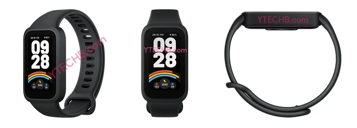 اولین رندرهای شیائومی اسمارتبند ۹ اکتیو منتشر شد و نشان داد که طراحی آن تفاوت چندانی با اسمارتبند ۸ اکتیو ندارد. سری اسمارت بند ۹ شیائومی در سه نسخهی وانیلا، پرو و اکتیو عرضه میشوند.