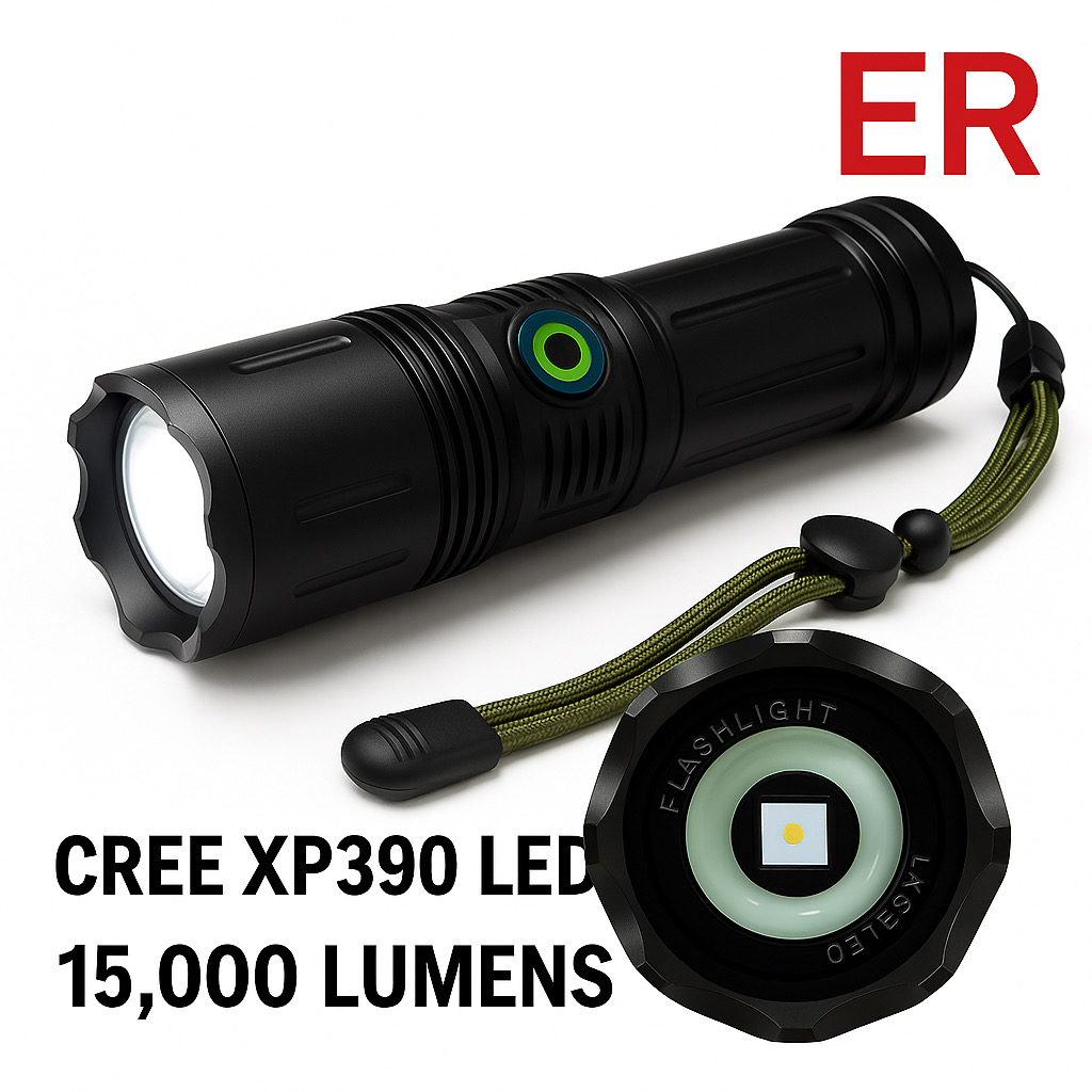 چراغ قوه روی لانگ مدل ER+P802 :یک انتخاب مناسب برای طبیعت گردی وکمپ مسافرتی میباشد این چراغ قوه قوی ترین چراغ قوه زوم دار می باشد این چراغ در حالت زوم شده پرتاب نوری به 1 کیلومتر دارد و در حالت معمولی ونور پخش تا 70 مترمربع را پوشش میدهد ، از دیگر ویژگی های این چراغ می توان : 1-لامپ این چراغ قوه از SMD :XP390 معادل 16500لومن که جدید ترین لامپ تولید شده می باشد 2-دارای نمایشگر شارژ باتری روی سوییچ چراغ قوه 3-درگاه TYP-C برای شارژ این چراغ قوه 4-داری 4حالت نورمیباشد(زیاد،2حالت کم،چشکم زن) + دارای خاموش کردن در هر حالت نوری با نگه داشتن سوِیچ چراغ قوه در هر حالت نوری چراغ قوه خاموش شده ودیگر نیاز نیست مراحل نوری طی شود و برای فعال کردن چشمک زن چراغ قوه سوییچ را 2بار فشار دهید چشمک زن SOS فعال میشود – 6- دارای خروجی 5ولت USB برای شارژ اضطراری تلفن همراه 7- ابعاد مناسب ، وزن کم اشاره کرد 8- بدنه این چراغ قوه آلیاژی بسیار با کیفیت و کاملا ضدآب می باشد در برابر ضربه ، گرد و خاک نیز مقاوم است ، این چراغ قوه دارای 1عدد پک باتری که شامل میشود از :3عدد باتری18650 با ظرفیت 9800 میلی آمپر می باشد ، مدت زمان مناسب برای شارژ این باتری بزرگ 5 ساعت می باشد ، باتری این چراغ قوه با شارژ کامل در حالت پر نور 2:30 ساعت و در حالت کم نور 4 ساعت نور دهی دارد